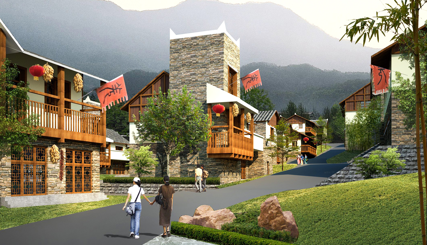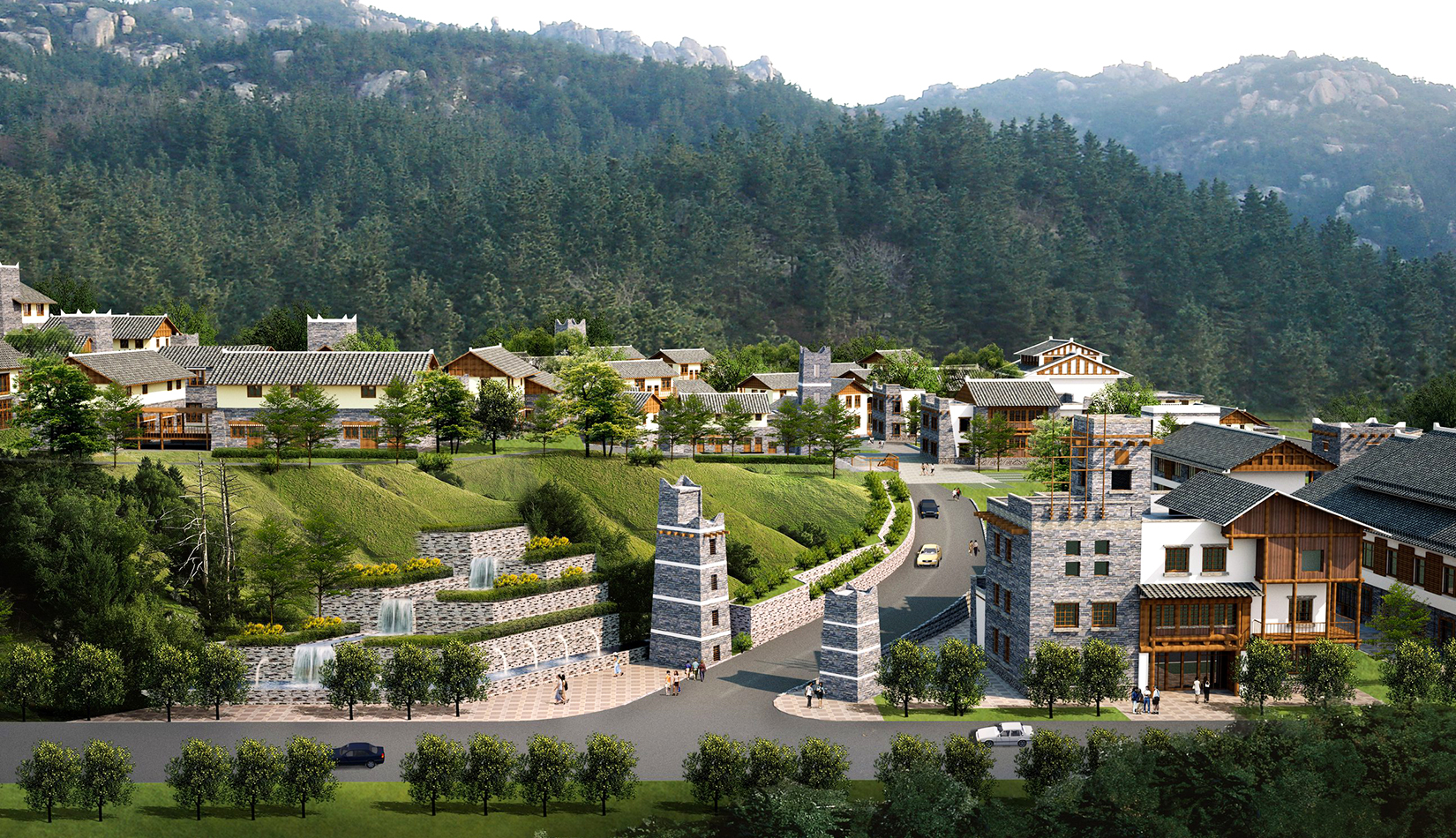建筑布局依山就勢,充分結(jié)合自然地形地貌,建筑體量與周邊環(huán)境和諧相融的生態(tài)型城鎮(zhèn);