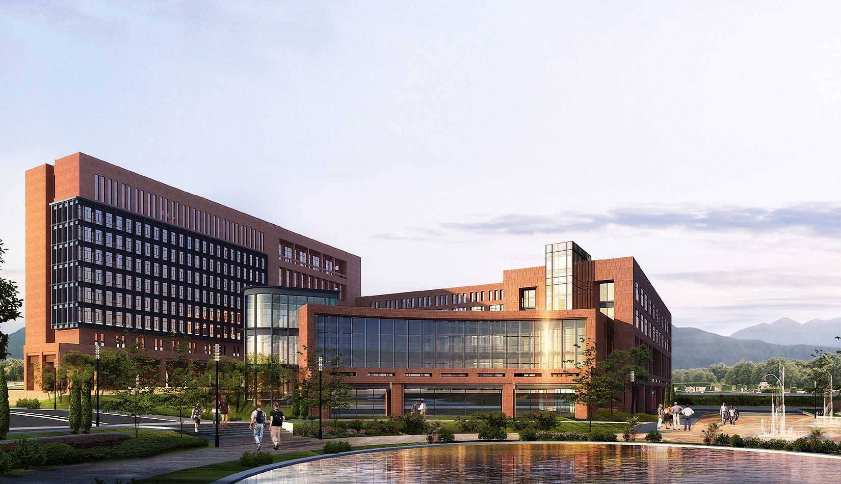 總體的規(guī)劃布局圍繞中心景觀廣場展開設(shè)計。首先從山區(qū)建筑布局師法自然,藏風聚氣的傳統(tǒng)觀念出發(fā),結(jié)合現(xiàn)代科學嚴謹求真務實的態(tài)度,設(shè)計以東側(cè)入口廣場導入的中心景觀空間圍合展開規(guī)劃布局,總體上根據(jù)土地的使用性質(zhì)分為四個區(qū),分別是正對主入口北側(cè)的生活區(qū),南側(cè)的孵化中心區(qū),正對主入口廣場的科研辦公區(qū),以及整個用地最南端的產(chǎn)業(yè)開發(fā)區(qū),各個區(qū)既相互獨立同時又緊密聯(lián)系,功能上即考慮主導風向又方便使用。