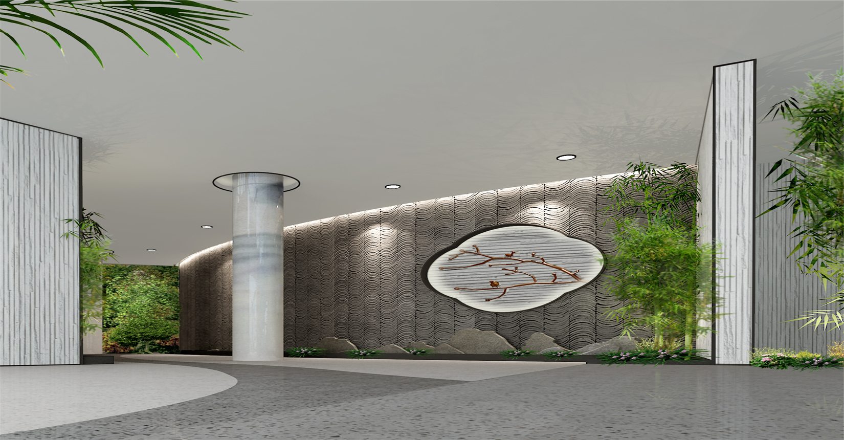 餐廳定位區(qū)別于傳統(tǒng)私人生態(tài)農(nóng)莊、農(nóng)家樂,需要更多結(jié)合智慧、科技、現(xiàn)代元素打造生態(tài)內(nèi)核,因此創(chuàng)新性地使用新東方主義設(shè)計風(fēng)格,將東方地域特色的典雅韻味植入于餐廳環(huán)境。在材料的使用上,多使用如花崗玉、裝飾纖維水泥板、仿古磚、防腐木地板等自然材料,突出餐廳的整體生態(tài)氛圍。